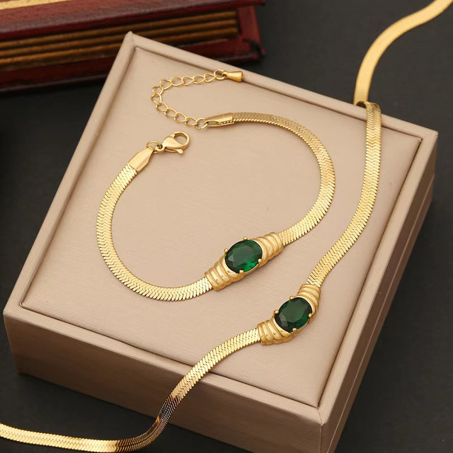 Transform your look with our elegant gold green zircon necklace and bracelet set, a perfect match for jewelry enthusiasts. Crafted from premium stainless steel, this set offers these outstanding qualities: